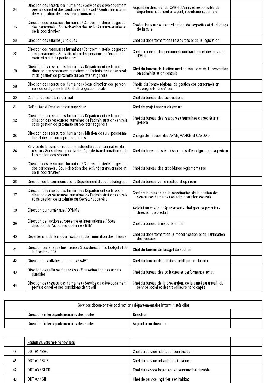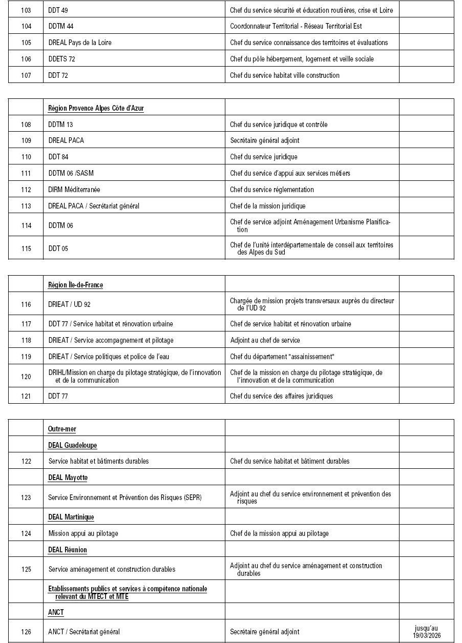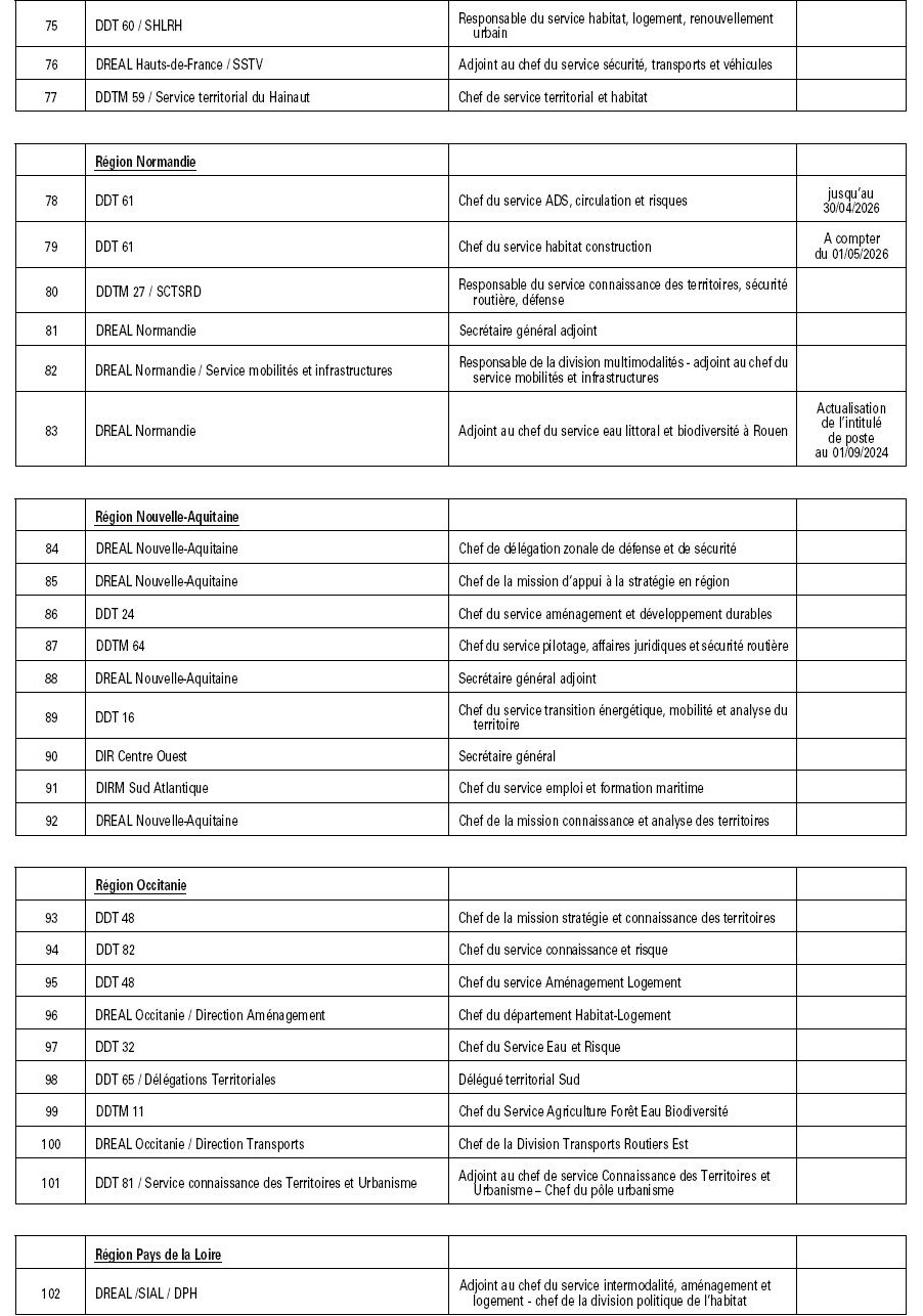 CAEDAD : liste des emplois de conseiller d’administration de l’écologie, du développement et de l’aménagement durables (01-01-26)