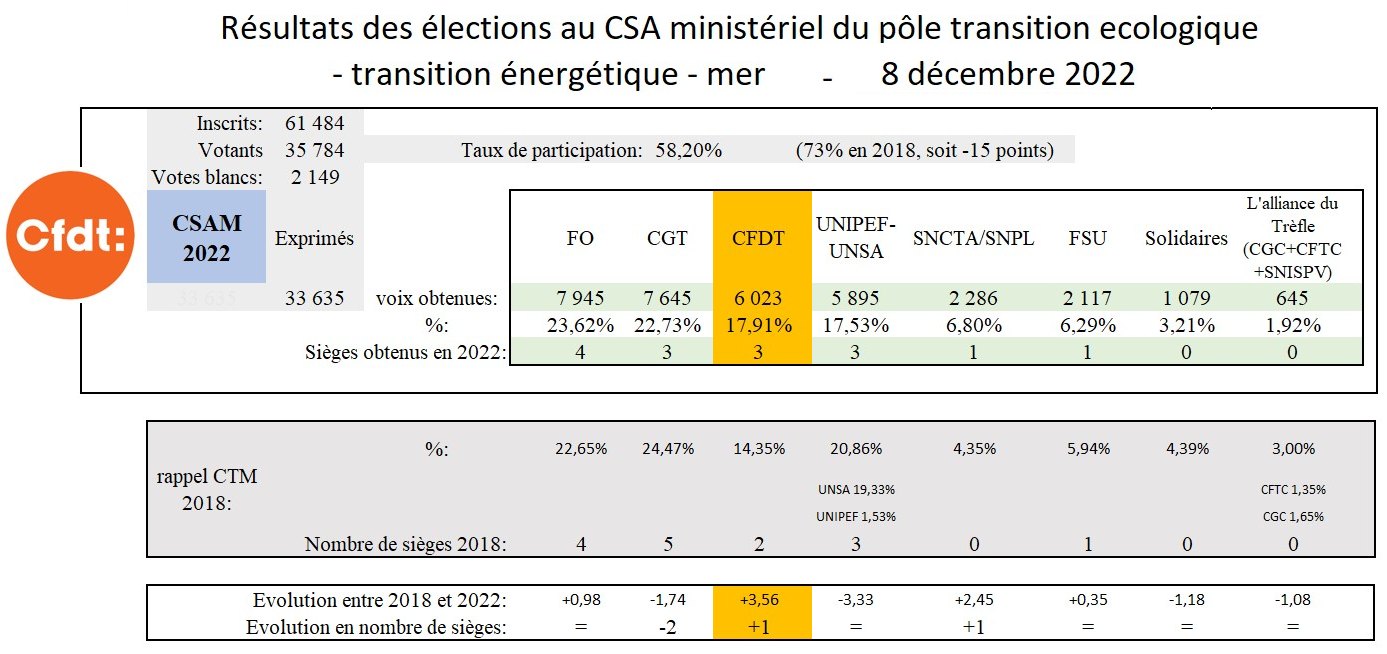 Merci à vous d’avoir fait progresser la CFDT de 3,6% au CSA ministériel par rapport au scrutin de 2018, malgré les difficultés liées à la nouveauté et à la difficulté du vote électronique.