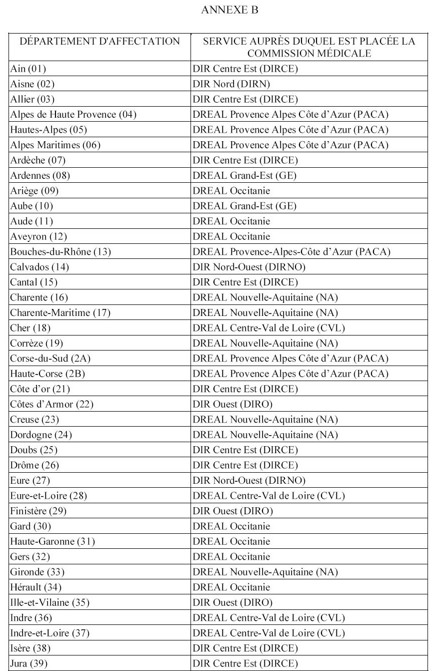 – Pour ceux affectés ou rattachés à une direction départementale des territoires (DDT) ou à une direction départementale des territoires et de la mer (DDTM), à l’exception de celles relevant de l’article premier, relèvent de la commission médicale locale figurant en annexe B, ci-après, en fonction de leur département d’affectation.