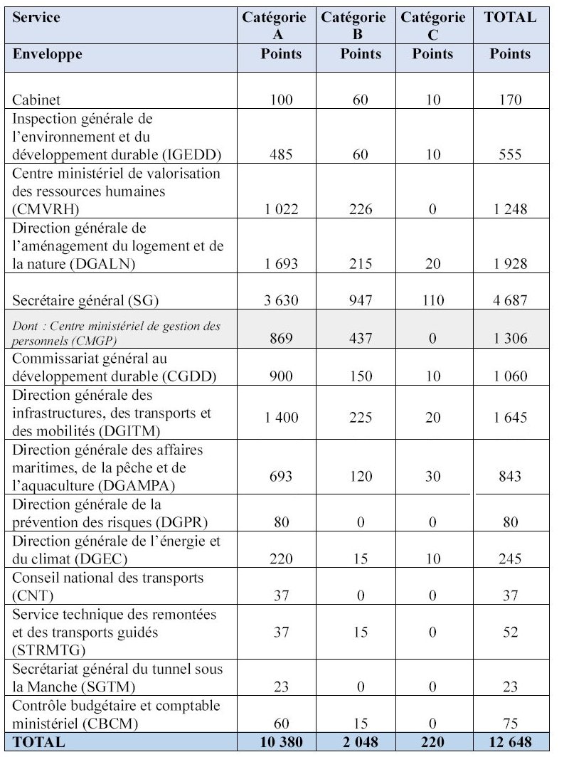 NBI : répartition de l’enveloppe de NBI dans les services centraux du MATTE