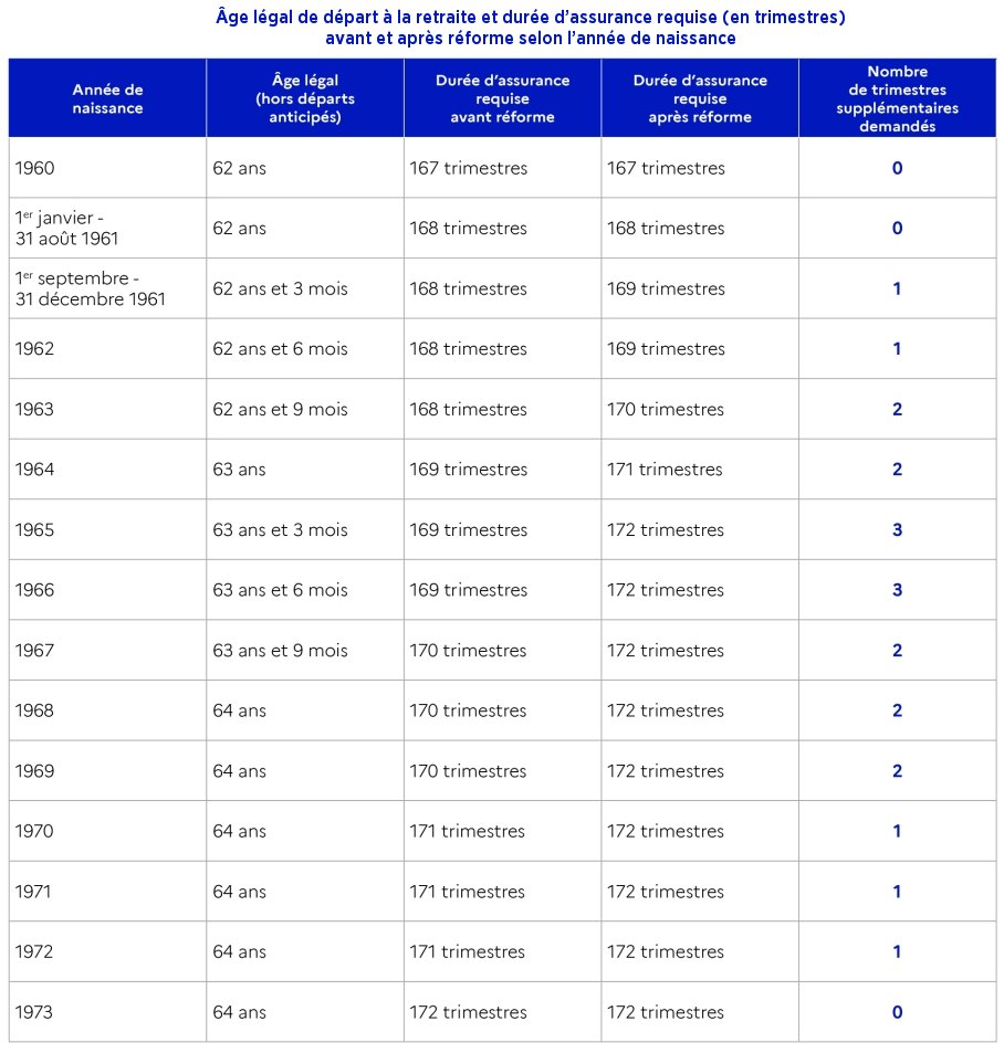 - 16-01-23 : Retraites : évolution des conditions de départ en retraite en fonction de votre année de naissance